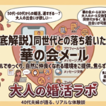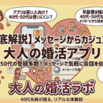 マッチングアプリで出会い、国際結婚した夫婦が運営するブログです。40代・50代の婚活・恋活に役立つリアルな情報をお届けします。 「40代・50代でも本当に出会えるの?」と不安なあなたへ。私たちは実際にマッチングアプリを使って出会い、結婚しました。このブログでは、実体験をもとに選び方・使い方を正直にお伝えします。 ルウ 目的別|あなたにぴったりのアプリを探す 💍 婚活・真剣な出会いを探している方 本人確認が厳格で、真剣な出会いを求めるユーザーが多いアプリを厳選しました。 CHECKOmiaiの評判・口コミ【真剣婚活に特化した安心感が魅力】› CHECKyoubrideの評判・口コミ【40代・50代の婚活に向いている理由を解説】› CHECKゼクシィ縁結びの評判・口コミ【本気の婚活なら外せない理由】› 💕 恋活・気軽な出会いから始めたい方 趣味や価値観のマッチングを重視した、出会いのハードルが低めのアプリです。 CHECKペアーズの評判・口コミ【40代が使ってみたリアルな感想】› CHECKwithの評判・口コミ【心理テストで相性がわかるって本当?】› 🔄 再婚・バツイチで婚活したい方 バツイチ・シングルマザー・再婚希望者が多く集まるアプリを紹介します。 CHECKマリッシュの評判・口コミ【再婚・バツイチの婚活に向いている理由を解説】› 年代別|おすすめ記事 👤 40代の婚活・恋活 CHECK40代におすすめのマッチングアプリ【実際に使った夫婦が比較】› CHECK40代女性におすすめのマッチングアプリ【婚活・恋活別に厳選】› CHECK40代男性におすすめのマッチングアプリ【婚活・恋活別に厳選】› 👤 50代の婚活・恋活 CHECK50代におすすめのマッチングアプリ【実際に使った夫婦が比較】› CHECK50代女性におすすめのマッチングアプリ【婚活・恋活別に厳選】› CHECK50代男性におすすめのマッチングアプリ【婚活・再婚に使えるアプリ厳選】› 国際結婚を考えている方へ 🌏 国際結婚・外国人との出会い 実際に国際結婚した私たちの体験をもとに、外国人との出会い方や国際結婚の実情をリアルにお伝えします。 CHECK国際結婚におすすめのマッチングアプリ【実際に使って出会えた方法を公開】› CHECK国際結婚ならではの悩みと解決方法【私が実際に経験したリアルな話】› CHECK私たちの出会いストーリー【中国人×日本人がペアーズで出会い国際結婚するまで】› アプリ選びに迷ったら 📋 比較記事・選び方ガイド どのアプリが自分に合うか迷ったときは、比較記事から始めましょう。 CHECKペアーズとOmiaiはどっちがいい?【目的・年代別に徹底比較】› CHECK結婚相談所とマッチングアプリはどっちがいい?費用・特徴・向いてる人を比較› CHECKマッチングアプリのプロフィール写真・自己紹介文の書き方【男性向け完全ガイド】› Post Share Hatena LINE note URLコピー